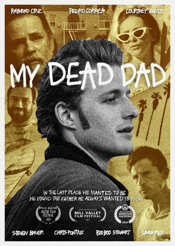 Co-written by Frey and Correa, the film is currently on the festival circuit, with premieres at the Mill Valley Film Festival, the Woodstock Film Festival, and, most recently, the Austin Film Festival. In addition to Correa and Cruz, My Dead Dad features a small but impressive cast: Courtney Dietz (Beast Beast), Simon Rex (who’s currently racking up accolades for Red Rocket), Booboo Stewart (Julie and the Phantoms), Steven Bauer (Ray Donovan), and Chris Pontius (Jackass: The Movie).